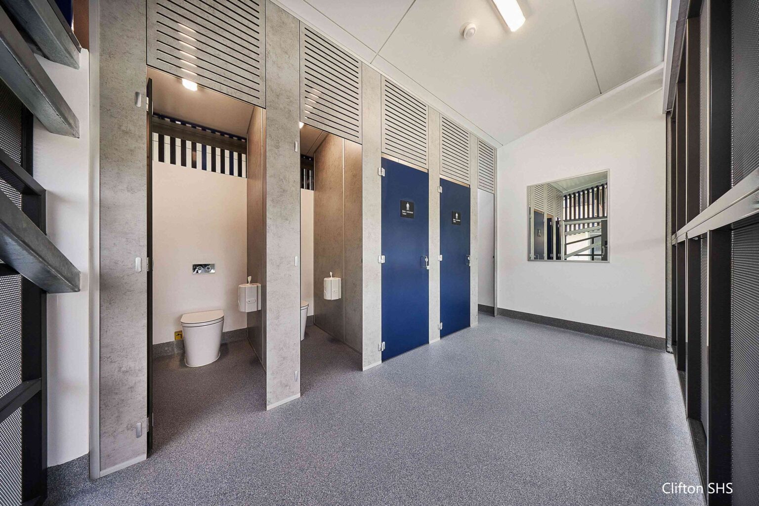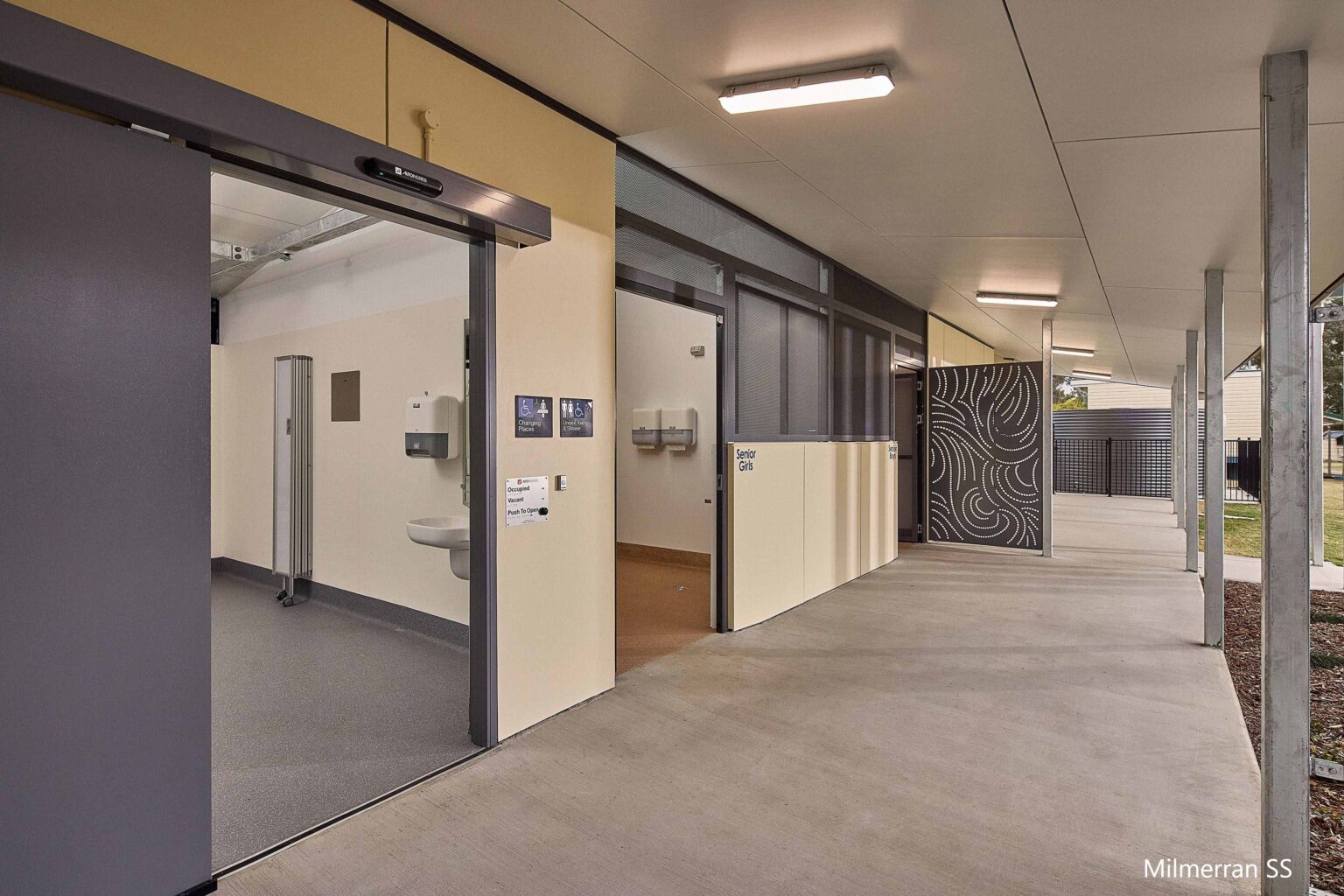 At Clifton State High School, the works included demolition of existing facilities to make way for a new, fully accessible amenities block incorporating a Changing Places facility to support people with disability. The scope also included a new covered walkway and improved pedestrian connections, enhancing accessibility and movement across the campus.